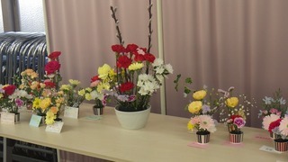 今回つかった花は、カーネーション、スターチス、カスミソウ、ガーベラなどです。最後は、みんなで一つの作品をつくりました。春らしい色がたくさんあり、心があたたまりました。素敵な時間をつくってくれた地域ボランティアの皆様に感謝申し上げます。参加した皆様も、素敵な作品をありがとうございました。